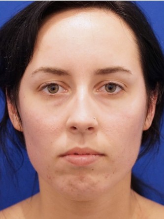 Case ID: 1540She has always desired more chin projection. Using a small 1.5cm incision under the chin, silicone chin implant with enhanced anatomical contour is inserted with minimal discomfort in the office. Complete local anesthesia is achieved. The upper lip was injected with Restylane Silk for overall balance visual effect.